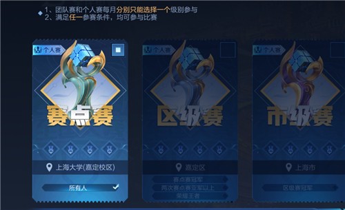 首先全国大赛选手卡的获取条件就是【拿到全国大赛赛点赛的冠军】,点击此处-查看赛点赛冠军的获取方法。就是参加匹配赛左边的【全民电竞】,在周五到周日参加比赛,连胜三场比赛就是赛点级冠军。